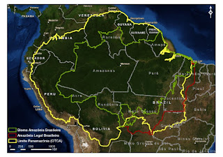 O bioma Amazônia ocupa cerca de 40% do território nacional. Nele estão localizados os estados do Pará, Amazonas, Amapá, Acre, Rondônia e Roraima e algumas partes do Maranhão, Tocantins e Mato Grosso. Também inclui terras de países próximos ao Brasil, como as Guianas, Suriname, Venezuela, Equador, Peru e Bolívia.