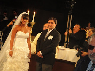 Nani entrega a filha ao noivo Thiago, ao lado de Sonia.