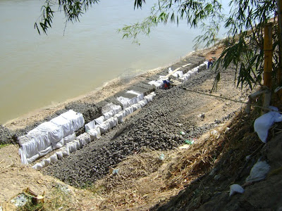 A Sedurb está com as obras atrasadas. Nunca conseguiu dar um start consistente às construções. Na foto, de outro plano, o Itacaiúnas desaguando no Tocantins. É exatamente nesse trecho aí com cerca de 200 metros, rio abaixo, que haverá um muro de arrimo e o prosseguimento da avenida beira-rio. As obras do muro de proteção estão indo em ritmo lento demais, com apenas cerca de oito operários trabalhando…