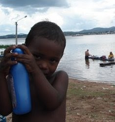 Enquanto a mãe lava roupa na tranqüilidade do Araguaia, o menino brinca.