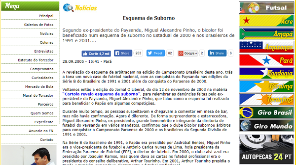 “A revelação do esquema de arbitragem na edição do Campeonato Brasileiro deste ano (2005), trás a tona um novo caso do futebol nacional, com as conquistas do Paysandu nas edições da Série B do Brasileiro de 1991 e 201 além da conquista do Paraense de 2000.