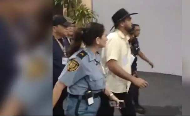 Na imagem destacada, prefeito de Parauapebas sendo conduzido para fora da COP 30 por agentes de segurança da ONU