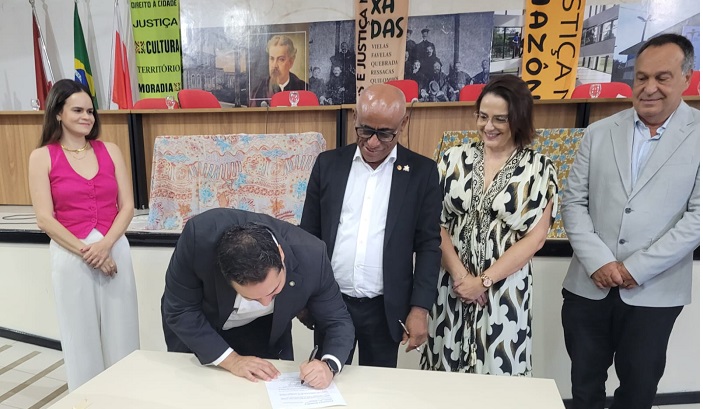 O reitor da Universidade Federal do Pará, professor Gilmar Pereira da Silva, assinou na manhã desta quarta-feira (5), no auditório do Instituto de Ciências Jurídicas (ICJ-UFPA), o Termo de Execução Descentralizada (TED) com o Ministério da Justiça e Segurança Pública, representado pelo diretor de Promoção de Acesso à Justiça, Pedro Henrique Viana Martinez, com objetivo de implantar o Programa Mais Justiça Socioambiental: Amazônia Legal.